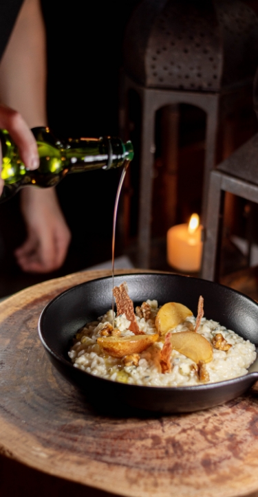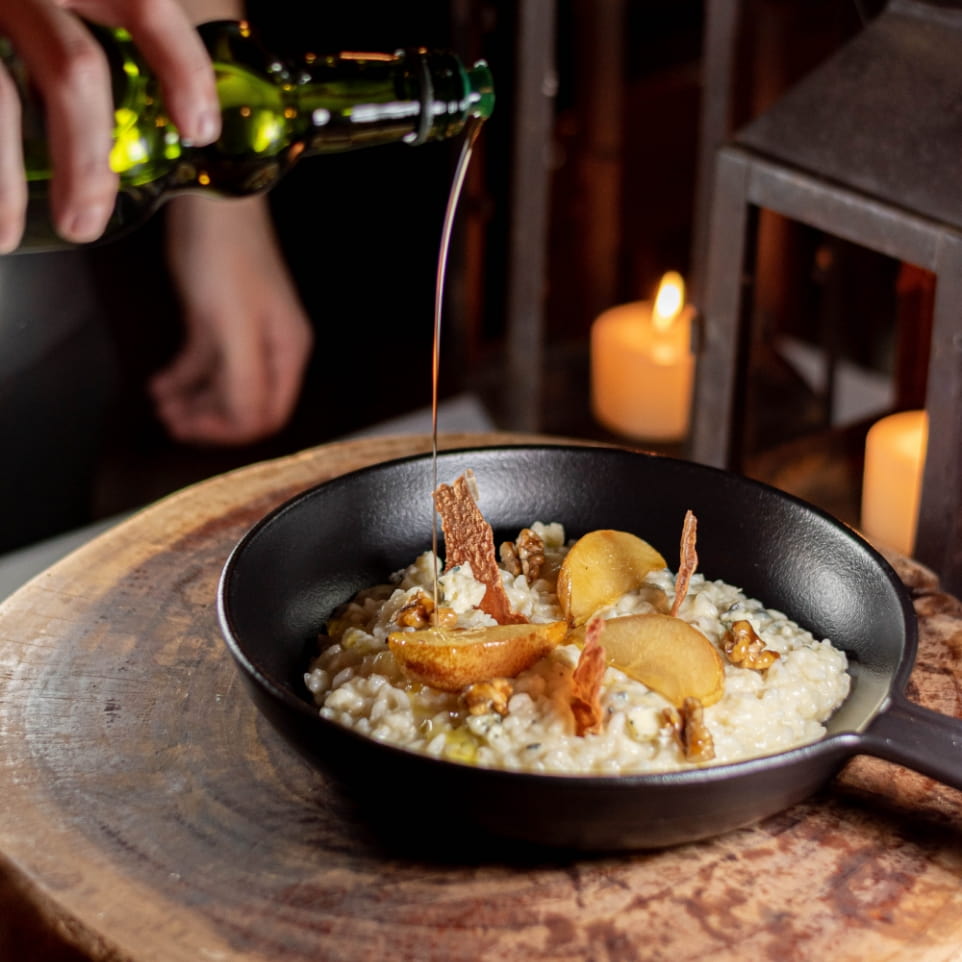 Our menu features an array of small plates, larger plates and pizzas all crafted from the finest ingredients and our bar serves as a perfect rendezvous for post-work gatherings or evening cocktails, boasting an unparalleled spirits library that earned us the distinction of being voted the UK's premier spirits bar.